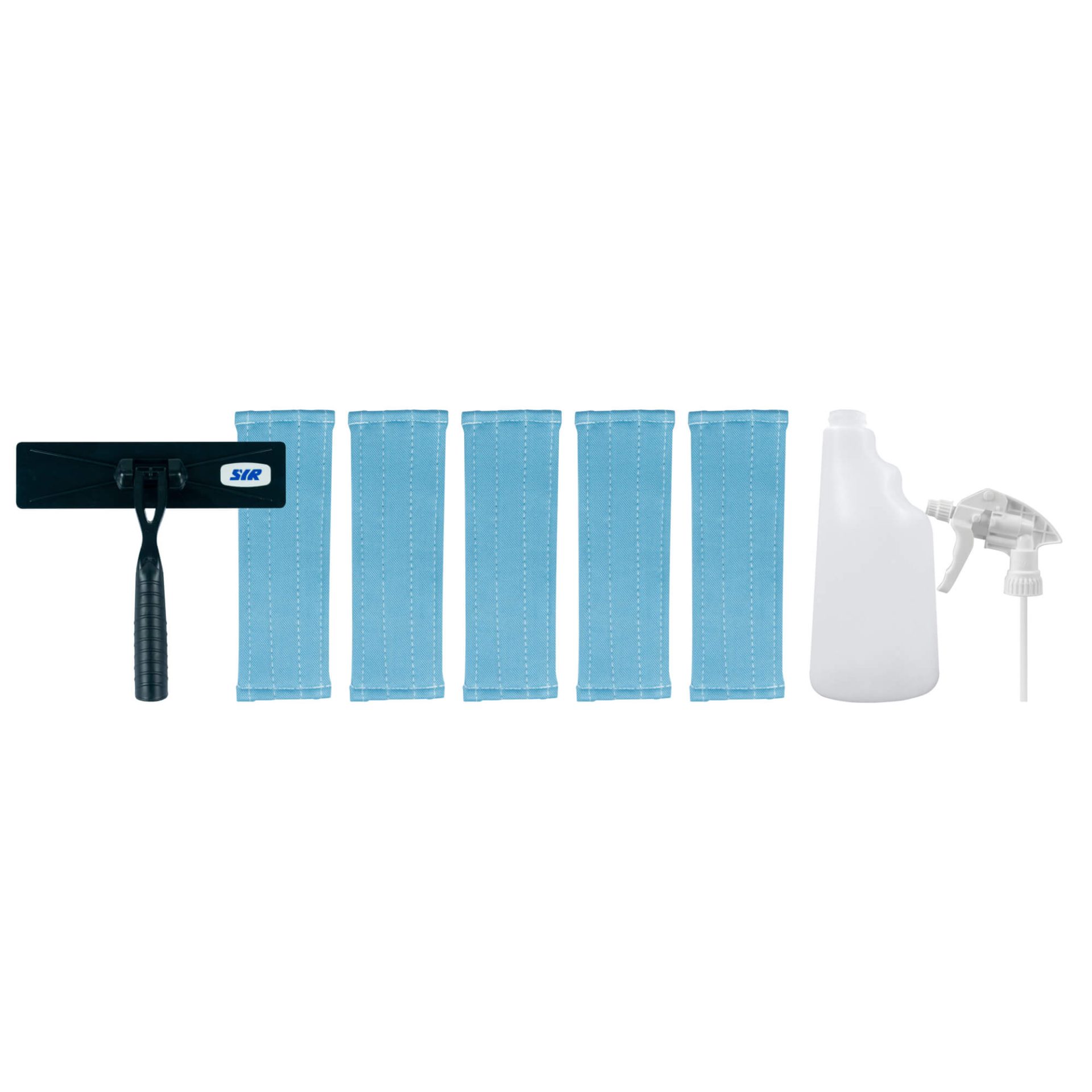 Kit contains 600ml spray bottle, white spray trigger, 5 MST Blue Microfibre Pads and MST Frame.