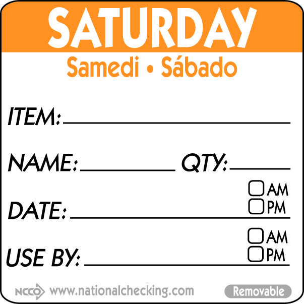 50mm Saturday Removable Day Label (500) - 1x500