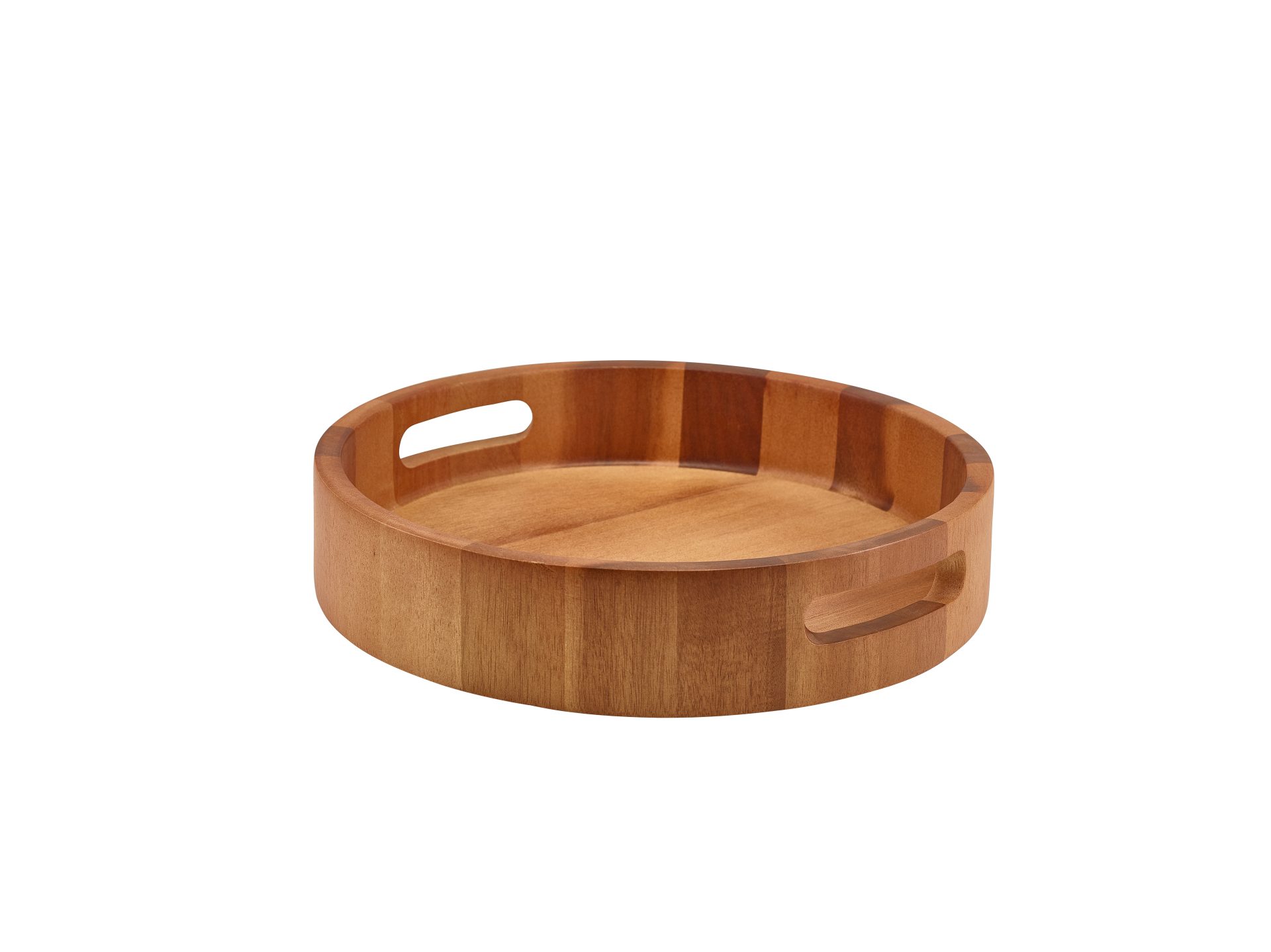 The GenWare Acacia Wood Round Serving Trays offer a stylish and versatile solution for food presentation and service. Crafted from durable, richly grained acacia wood, these trays combine natural elegance with everyday functionality. Ideal for serving drinks, canapes, afternoon tea, or creating centrepiece displays, their smooth, round shape and warm tones bring a rustic charm to any table, buffet, or event setting.