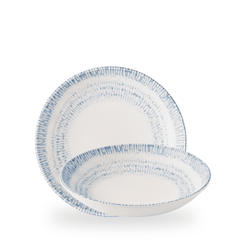 The captivating Cascade pattern radiates outward from a central point, naturally framing the plate to enhance food presentation.