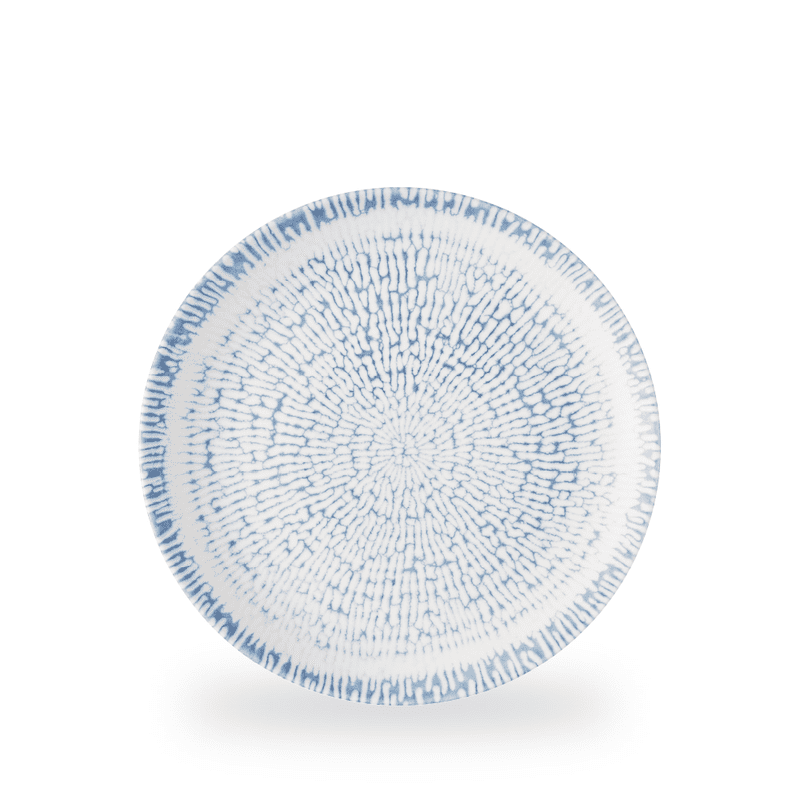 The captivating Cascade pattern radiates outward from a central point, naturally framing the plate to enhance food presentation.