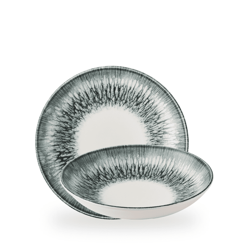 The Inked Lumé design evokes an energetic burst of radial light, adding brilliance to dynamic tabletops. Transforming every meal into an experience, Lumé brings drama and a sense of artistry to the table.