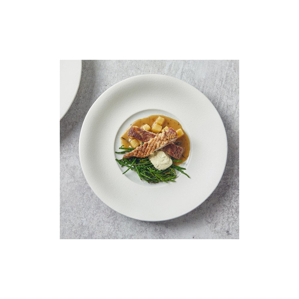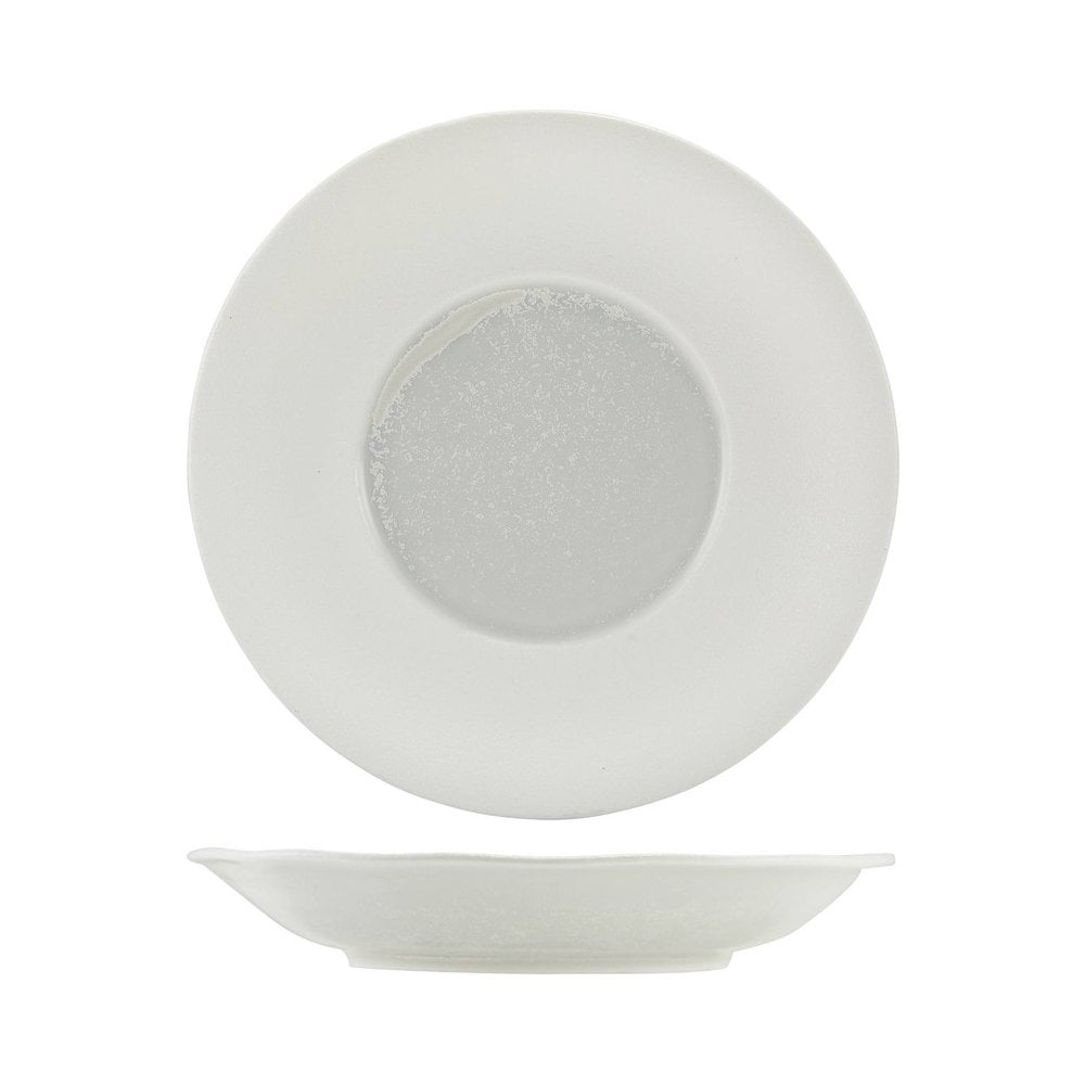 The Incise Porcelain Lustre collection features an elegant series of gourmet dishes, finished with a refined textured matt white glaze for added sophistication. The centre of each plate showcases a stunning reactive pearlescent glaze, creating a captivating focal point. Perfect for upscale settings, this range blends striking aesthetics with practical design, allowing chefs to create visually stunning and memorable presentations for any occasion.