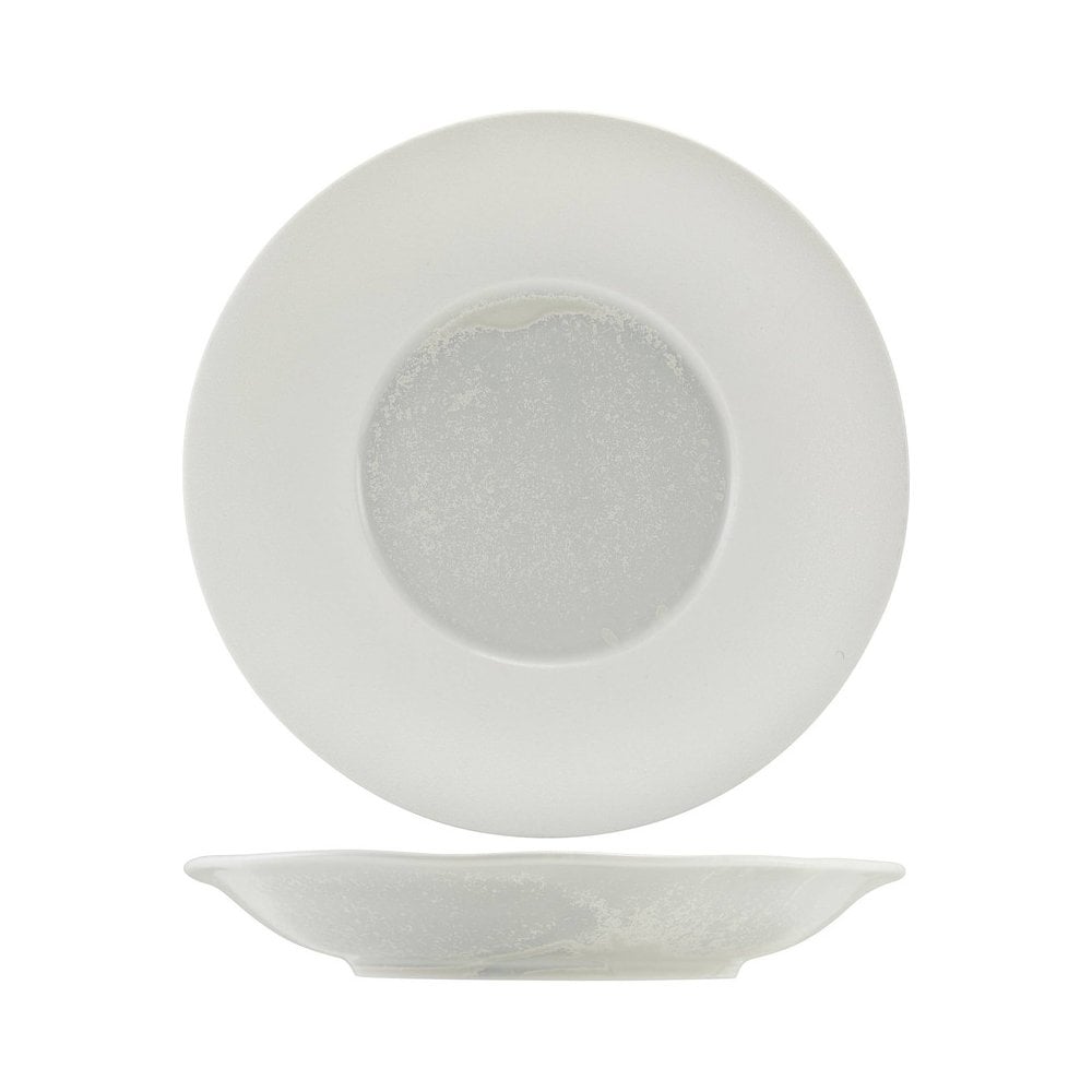 The Incise Porcelain Lustre collection features an elegant series of gourmet dishes, finished with a refined textured matt white glaze for added sophistication. The centre of each plate showcases a stunning reactive pearlescent glaze, creating a captivating focal point. Perfect for upscale settings, this range blends striking aesthetics with practical design, allowing chefs to create visually stunning and memorable presentations for any occasion.