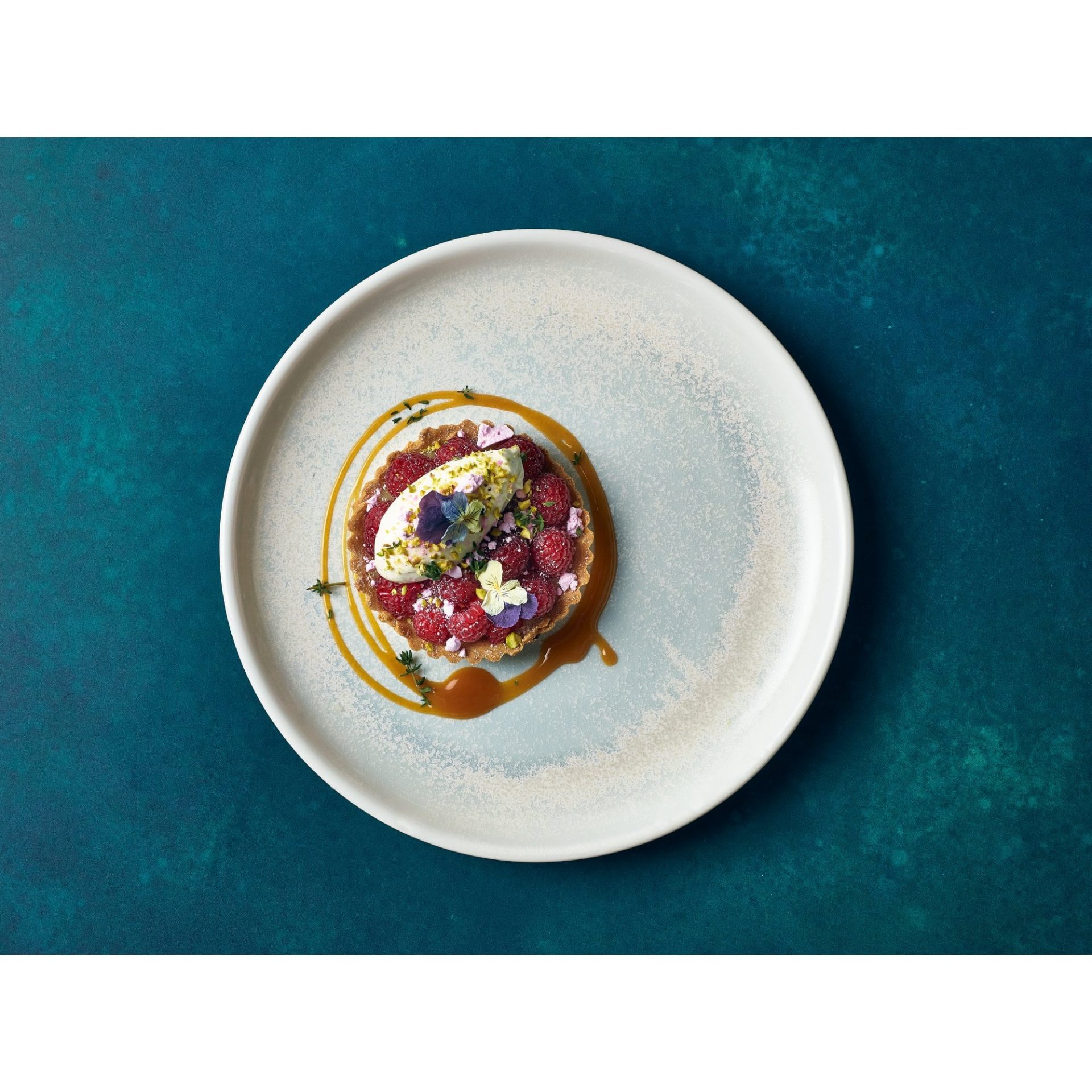 Terra Porcelain's undefined beauty is crafted through natural effects and spontaneous reactions which occur in the kiln. A unique glaze formula, combined with high temperature firing, results in no two pieces looking exactly alike and colour intensity variations from piece to piece, creating a truly distinctive look. The Pearl Terra Porcelain collection draws inspiration from the iridescent hues and natural beauty of pearls with it's blend of soft whites, greens and blues which shimmer and shine. Each piece in the collection boasts a luxurious and unique pearlescent finish which adds a touch of opulence to culinary presentation perfect for a spectrum of dishes and cuisines.