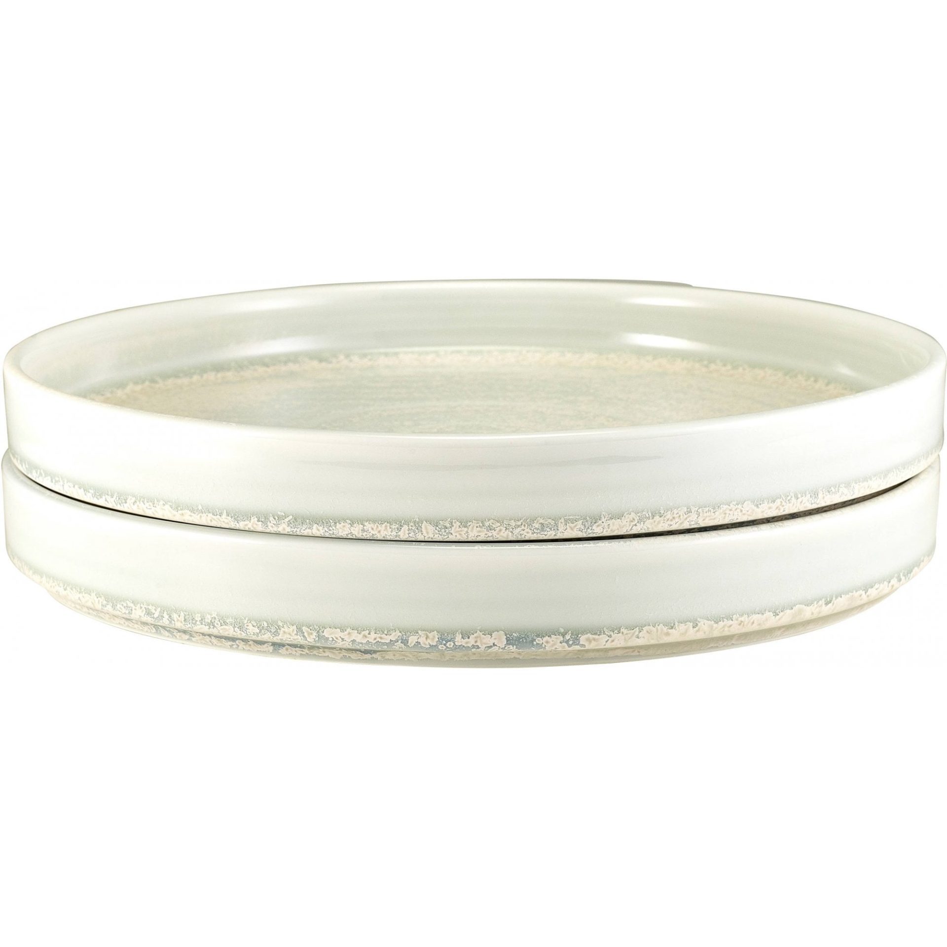 Terra Porcelain's undefined beauty is crafted through natural effects and spontaneous reactions which occur in the kiln. A unique glaze formula, combined with high temperature firing, results in no two pieces looking exactly alike and colour intensity variations from piece to piece, creating a truly distinctive look. The Pearl Terra Porcelain collection draws inspiration from the iridescent hues and natural beauty of pearls with it's blend of soft whites, greens and blues which shimmer and shine. Each piece in the collection boasts a luxurious and unique pearlescent finish which adds a touch of opulence to culinary presentation perfect for a spectrum of dishes and cuisines.