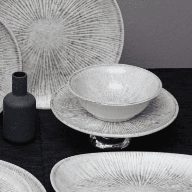 Celestial features on-trend textured grey tones. Use as signature pieces to add vibrancy to any food presentation.