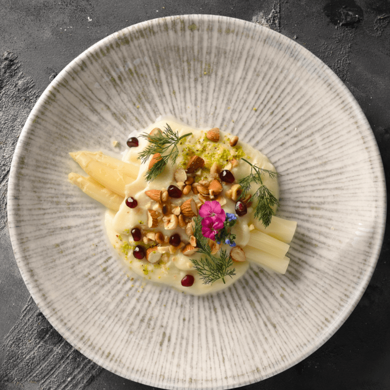 Celestial features on-trend textured grey tones. Use as signature pieces to add vibrancy to any food presentation.