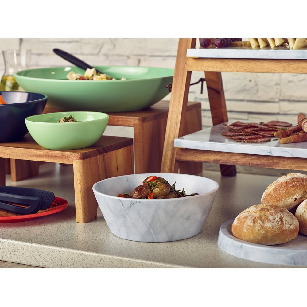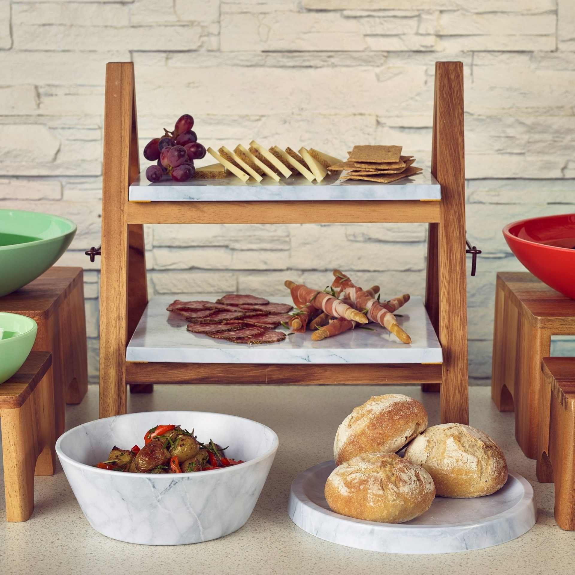 The Agra collection which replicates the look and feel of authentic marble in a melamine construction. Our beautiful and on-trend white marble effect melamine Display Slab in Gastro sizes allows you to display your food on a 100% food safe melamine display slab. The Agra Gastro display white marble effect melamine slab is 100% food safe and easier to manage than real marble, being dishwasher safe coupled with being extremely durable, making it the perfect partner to enhance your food display. Used for both ambient and chilled, our Agra marble effect display slabs are perfect for presenting cakes to bread, croissants to cheese. The durable and food safe Agra collection is on trend food display solution and comes in a wide range of different sizes.