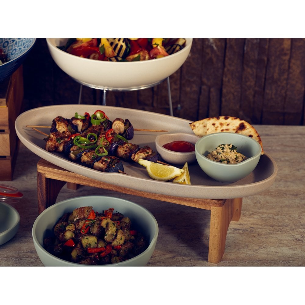 This Copenhagen lipped matte bamboo white medium dish measures 475x240x35mm. Our Copenhagen collection features a complete assortment of matte finished bowls, plates and oval shaped dishes, made up from melamine, in a choice of either Matte a sand brown colour or Matte white. The range also features a strikingly original colour choice, a Matte jade, which is made up of 100 % food grade melamine. The highly versatile Copenhagen collection offers endless food display presentation possibilities for all types of either chilled or ambient food displays including pasta, starters, seafood, desserts, and finger foods.