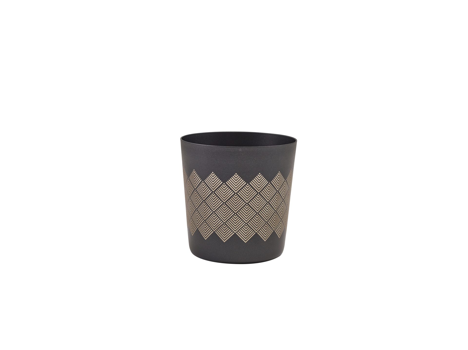Elevate your food presentation with the GenWare Metallic Black Diamond Serving Cup. Featuring a stylish black PTFE metallic coating and a precision laser engraved diamond pattern, this serving cup combines function with a bold, contemporary aesthetic. Ideal for a variety of side dishes, it's the perfect addition to modern table settings where visual detail matters.