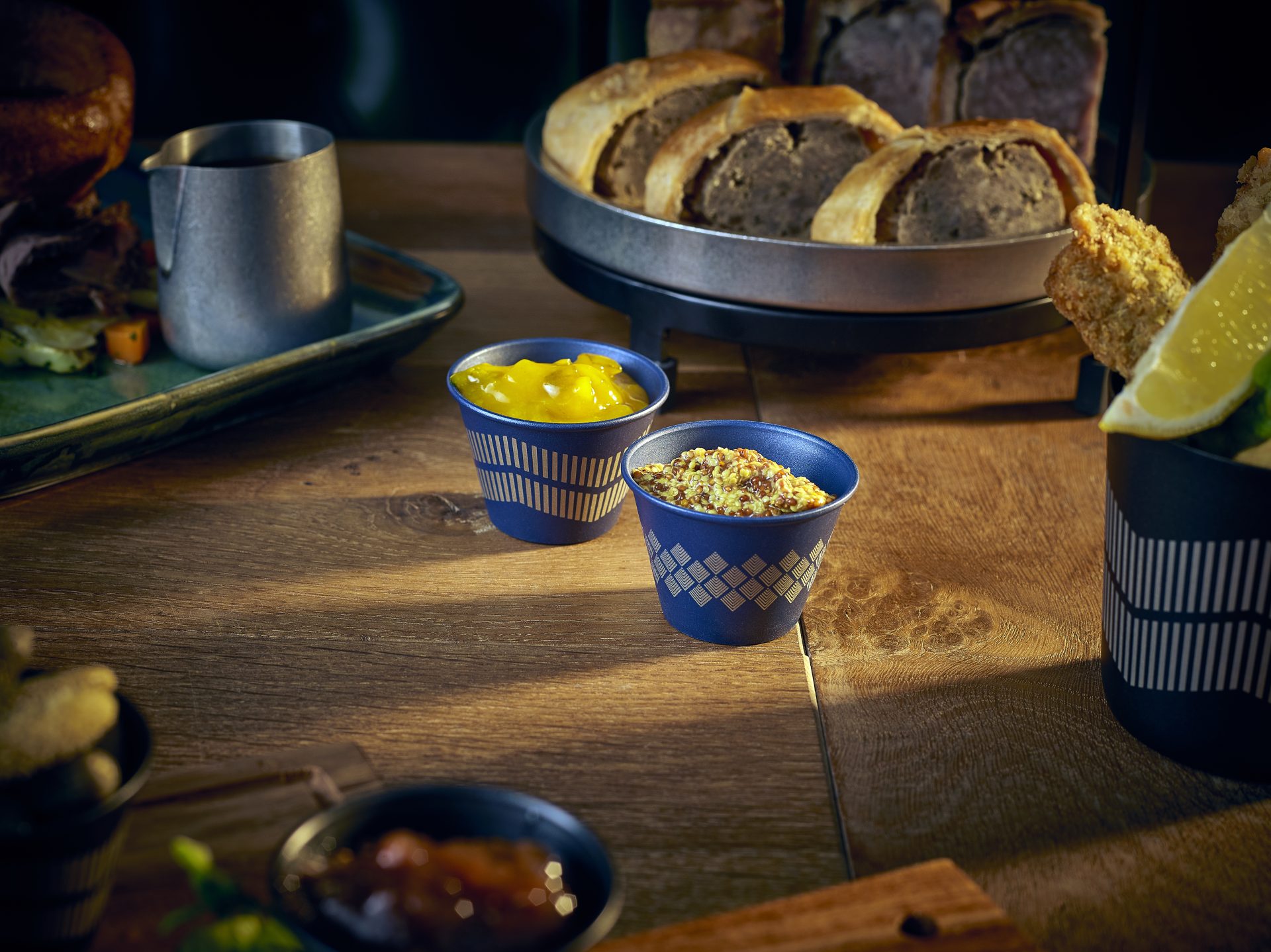 Elevate your condiment presentation with the GenWare Metallic Blue Diamond Ramekin. Featuring a stylish blue PTFE metallic coating and a precision laser engraved diamond pattern, this ramekin combines function with a bold, contemporary aesthetic. Ideal for sauces, dips, and olives, it's the perfect addition to modern table settings where visual detail matters.