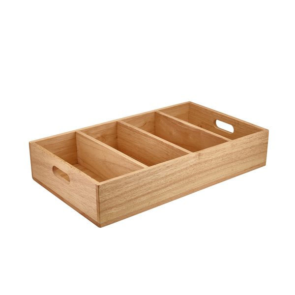 Hevea Wood 4 Compartment Cutlery Tray - Each